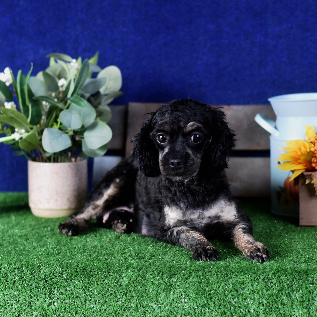 Spencer is a friendly curly haired little Cavapoo boy. White stripe down his face, some brown highlights, and inquisitive eyes will be sure to bring warmth to your heart! He will also be dewormed, up to date on vaccinations, and vet checked.