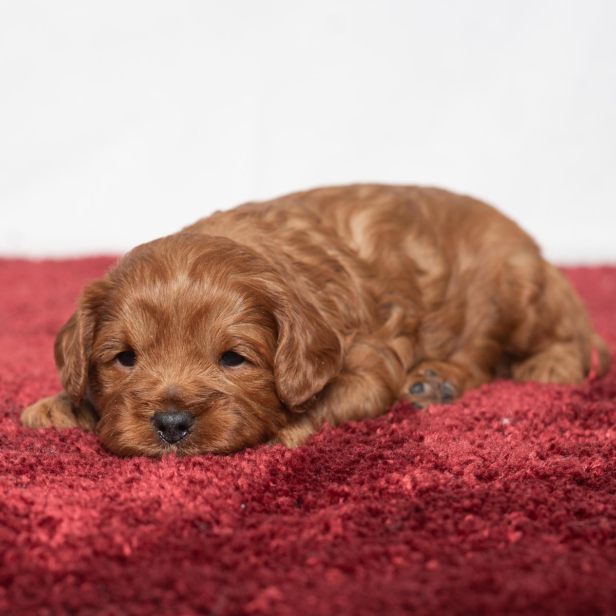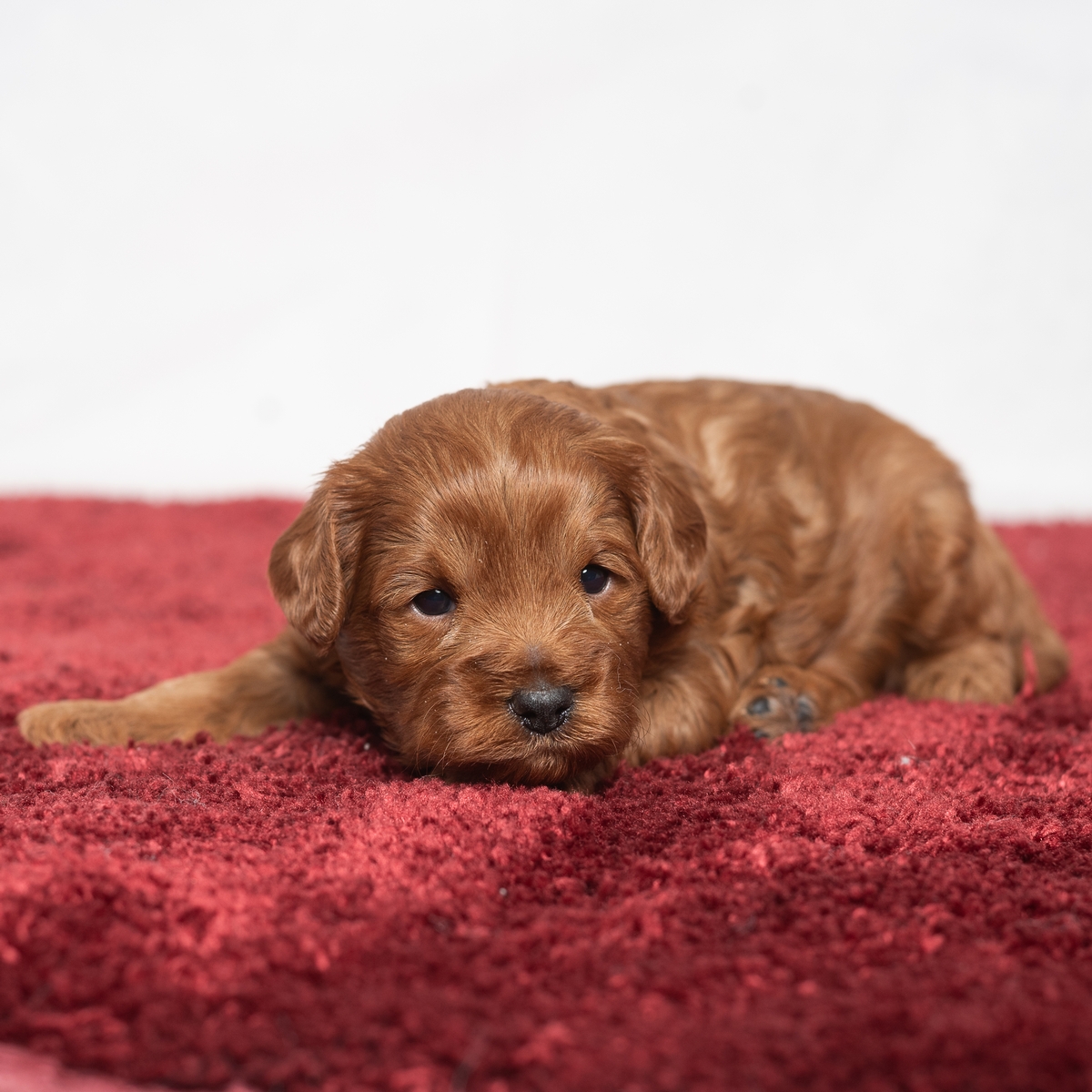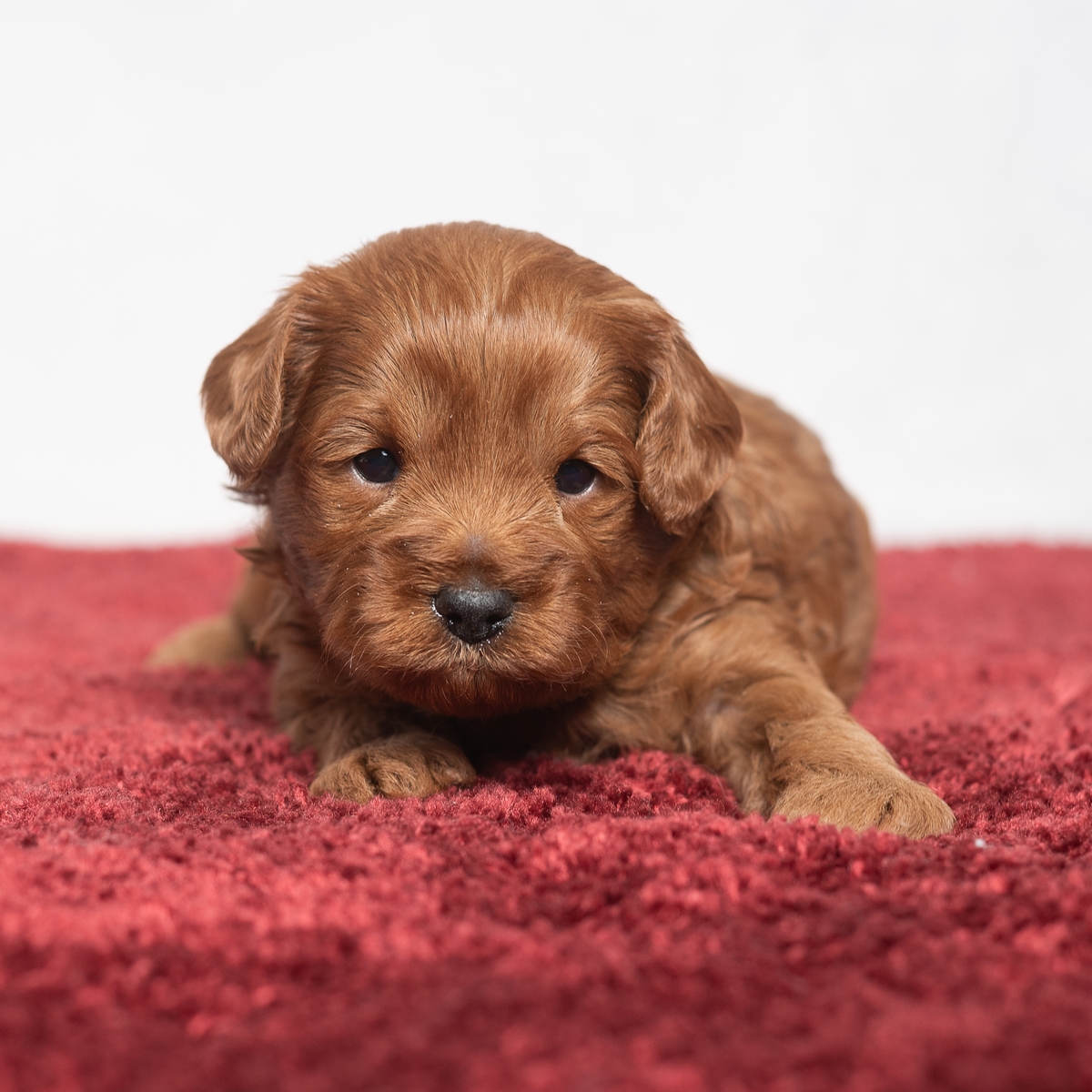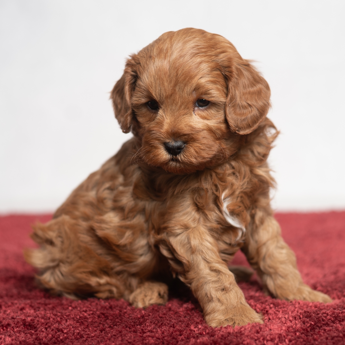 Birch is a little Cavapoo guy looking for a new home. He appears to be a completely red puppy! He will be the perfect addition to your home and would love to make memories with you!