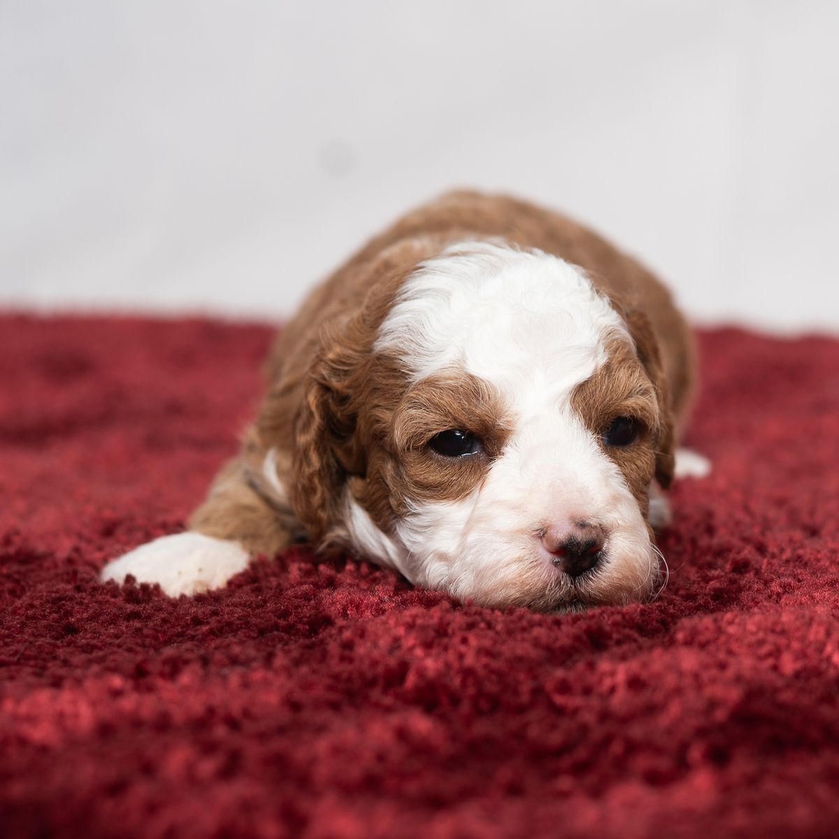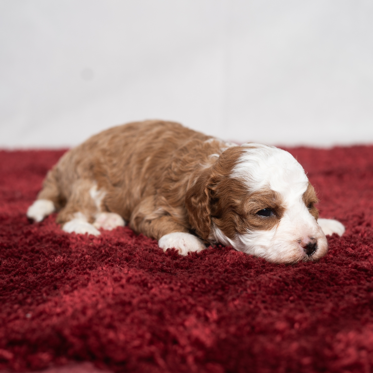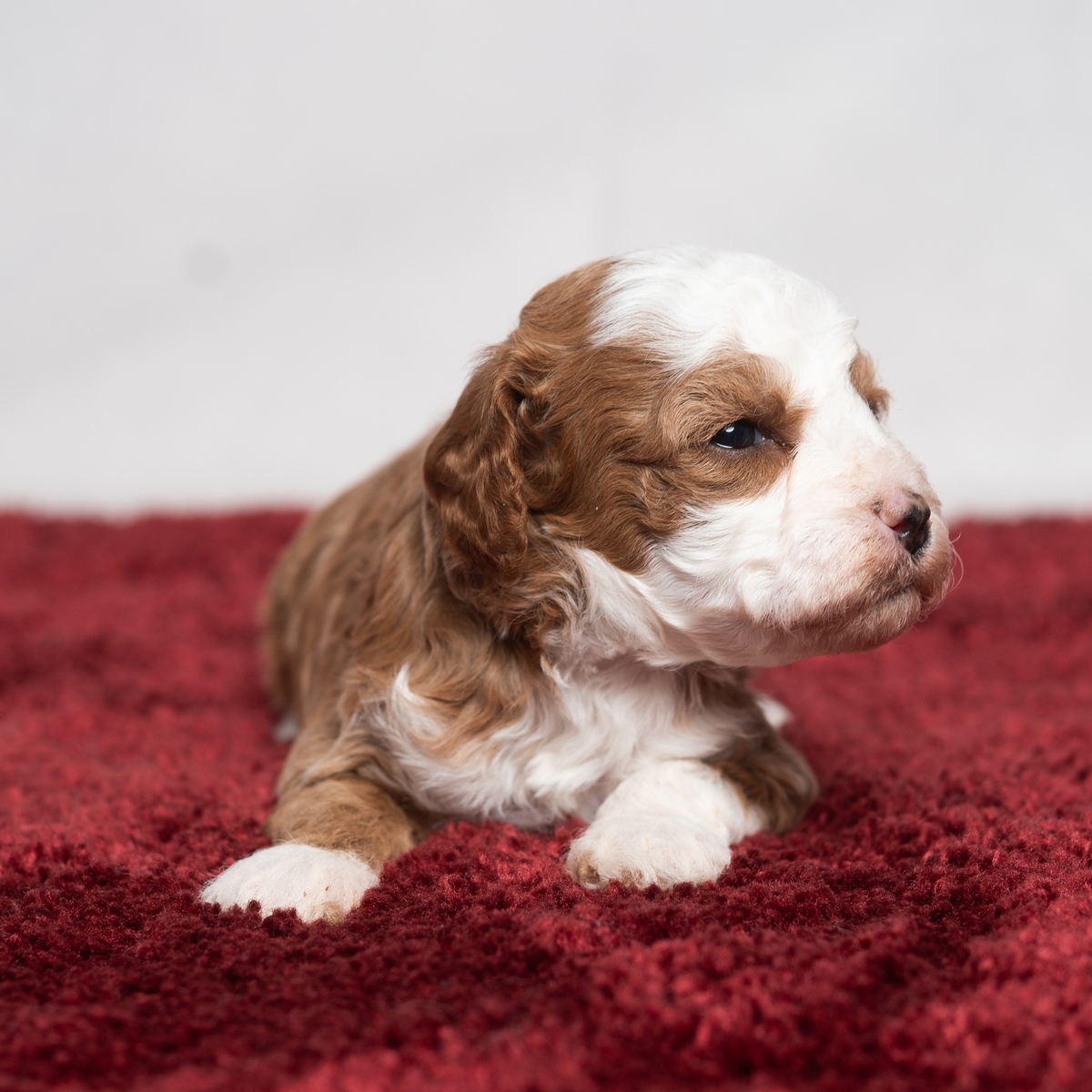 Clove is a little Cavapoo girly looking for a new home. She has a spot of white on her throat and a spot of white on her chest. She also has a small patch of white on her head. She would love to be your friend!