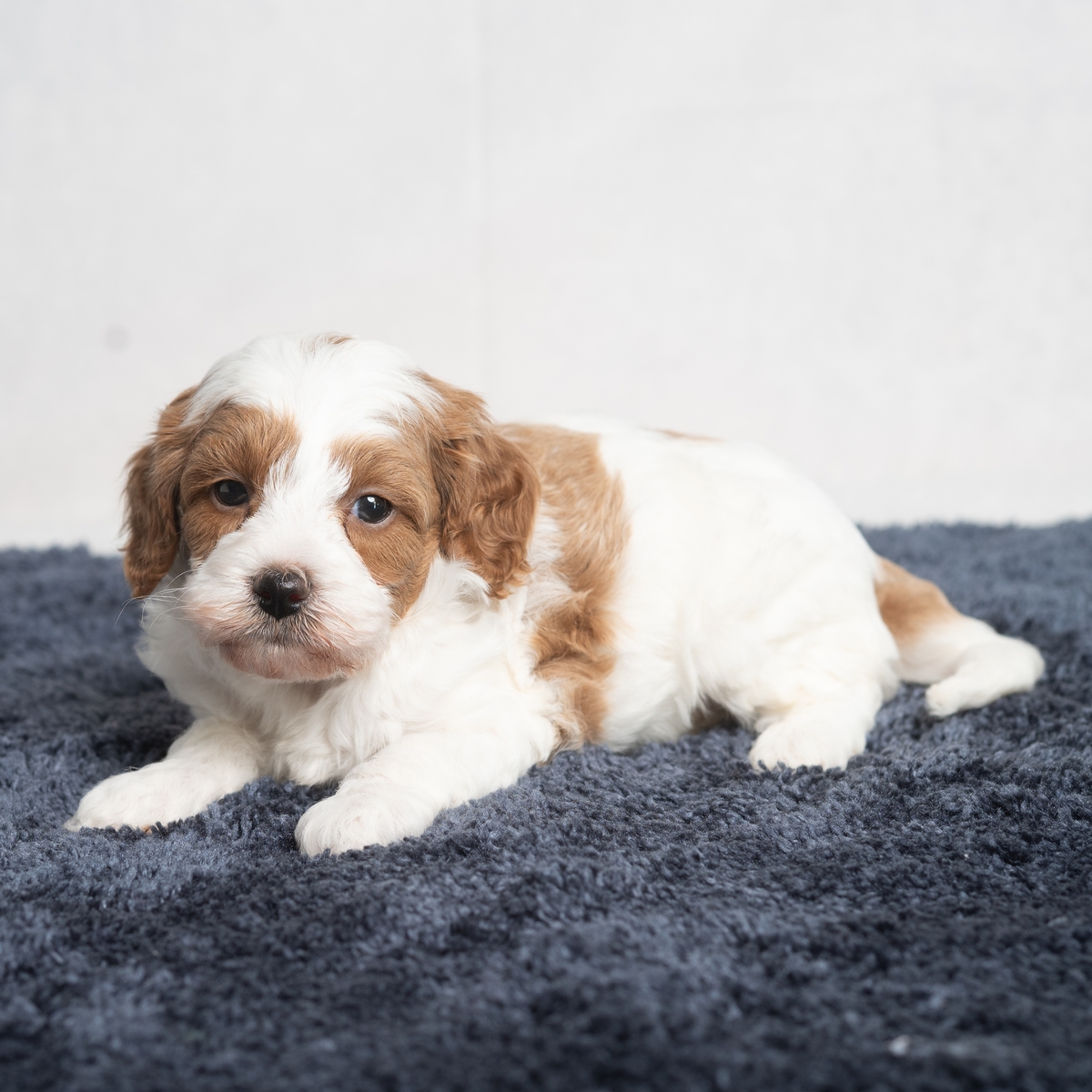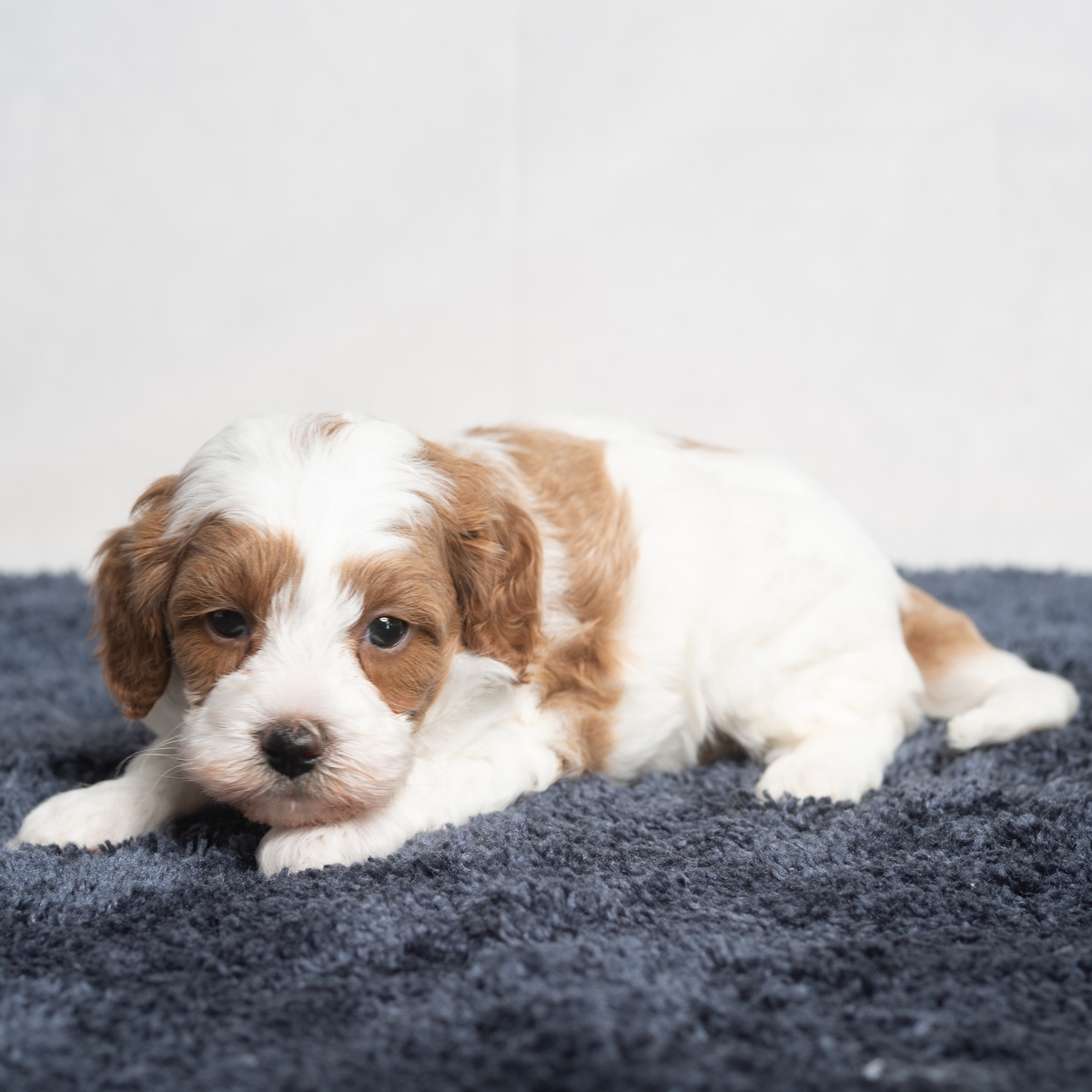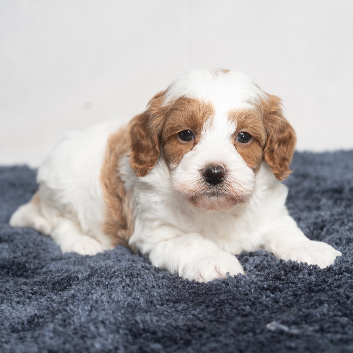 Cinnamon is a little Cavapoo girl with lots of white markings! Looking for a companion to bring cheer to your wintery days, greet you at the door, or give you puppy kisses? Cinnamon will bring a smile to your face!