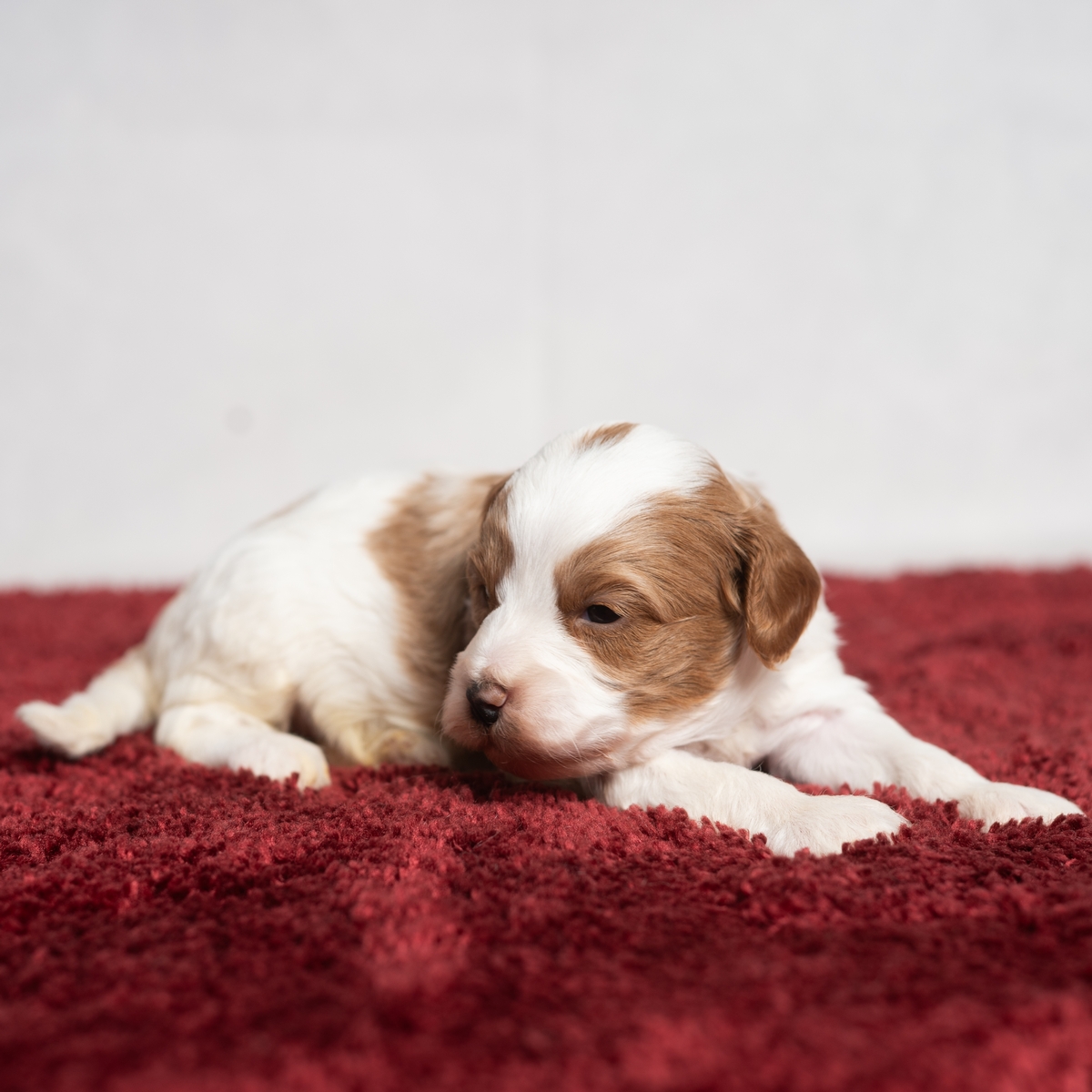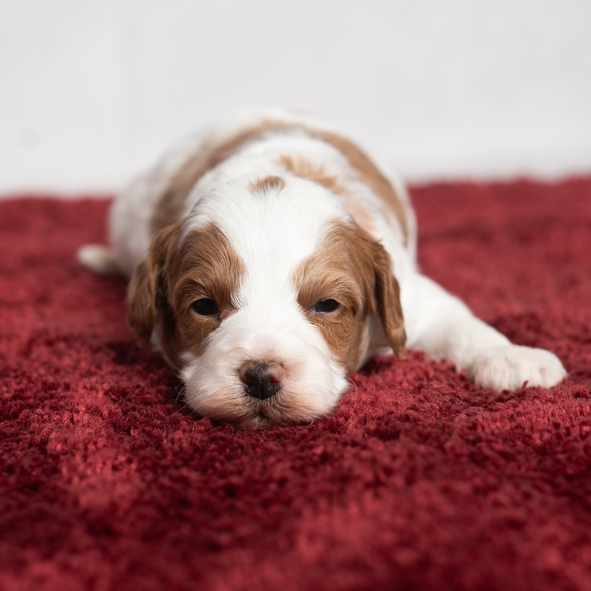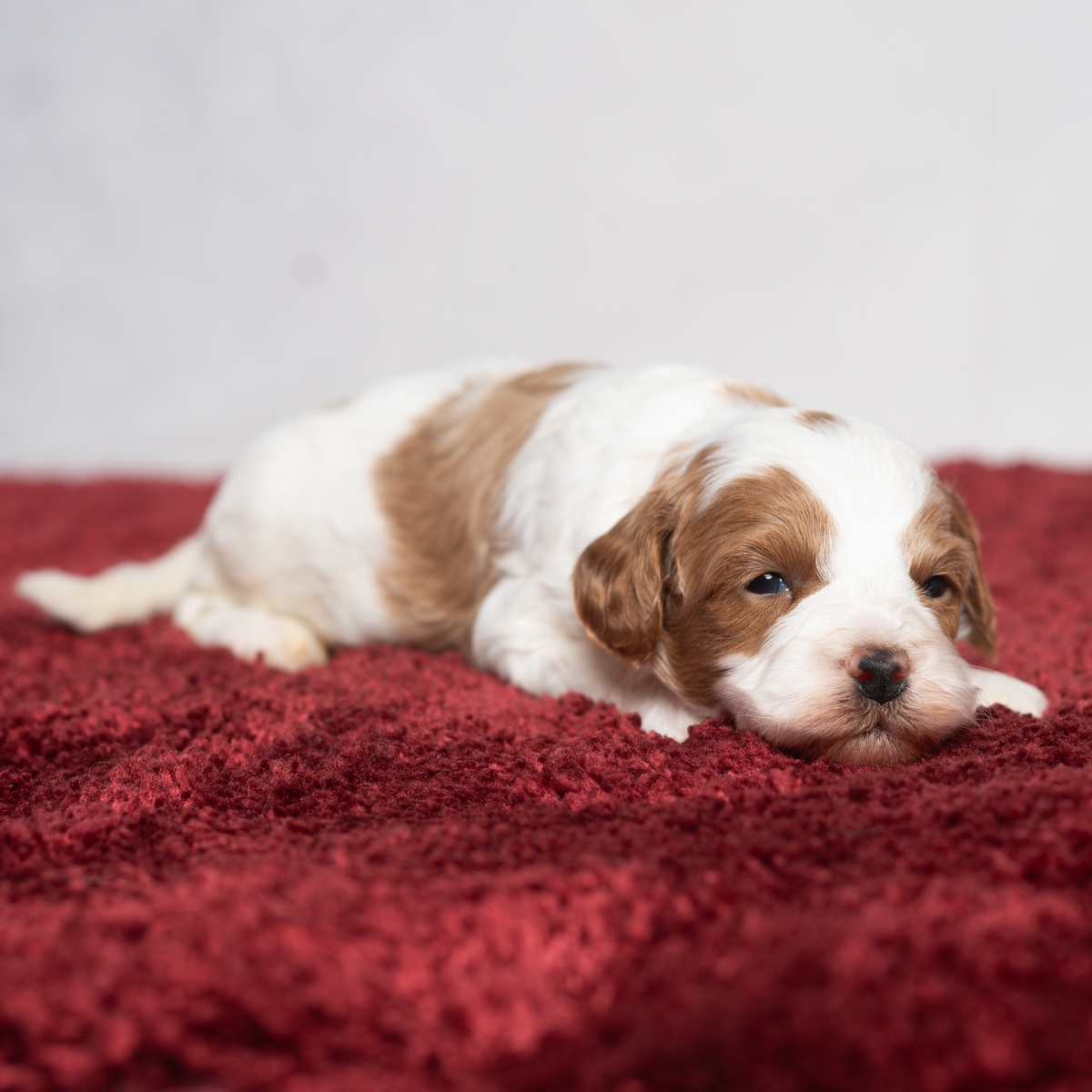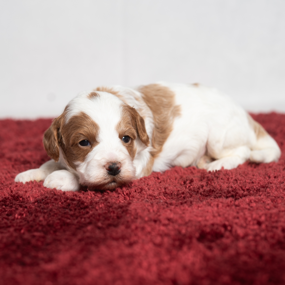 Cinnamon is a little Cavapoo girl with lots of white markings! Looking for a companion to bring cheer to your wintery days, greet you at the door, or give you puppy kisses? Cinnamon will bring a smile to your face!