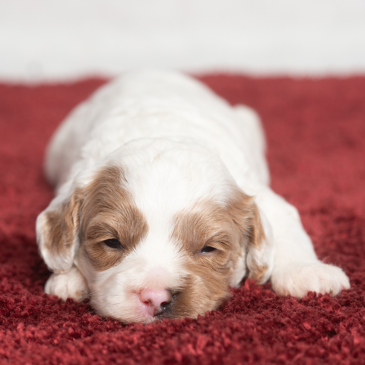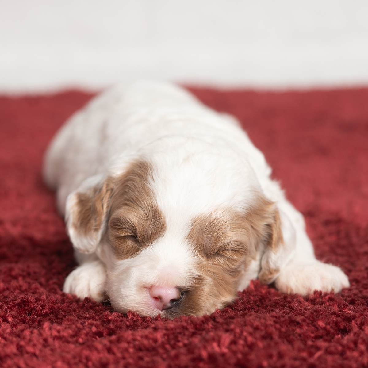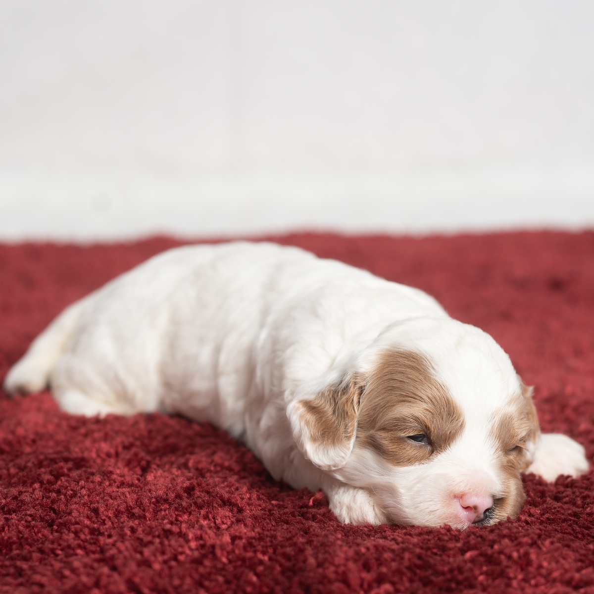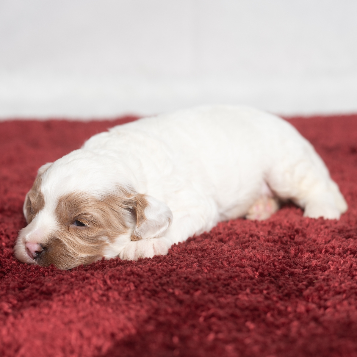 This is Hannah! She is a little Cavapoo girly and has some white on her chest and some of her toes. She will be eager to please and captivate your heart each time you see her! Make a deposit today!