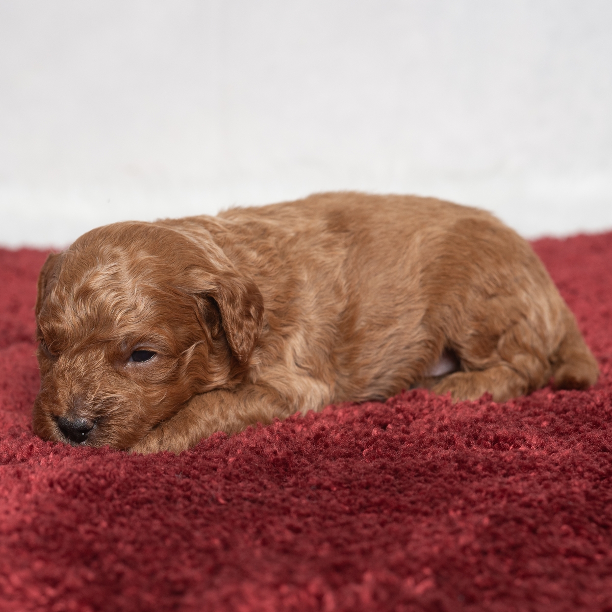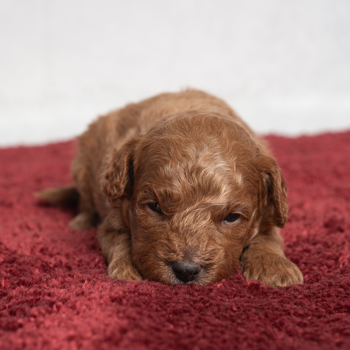 This is Isaac! Curly haired, sweet faced, and wagging tail will greet you at the door each day. Need a little puppy to go with you on a walk or cuddle with you as you relax in your favorite chair? Isaac will be by your side!