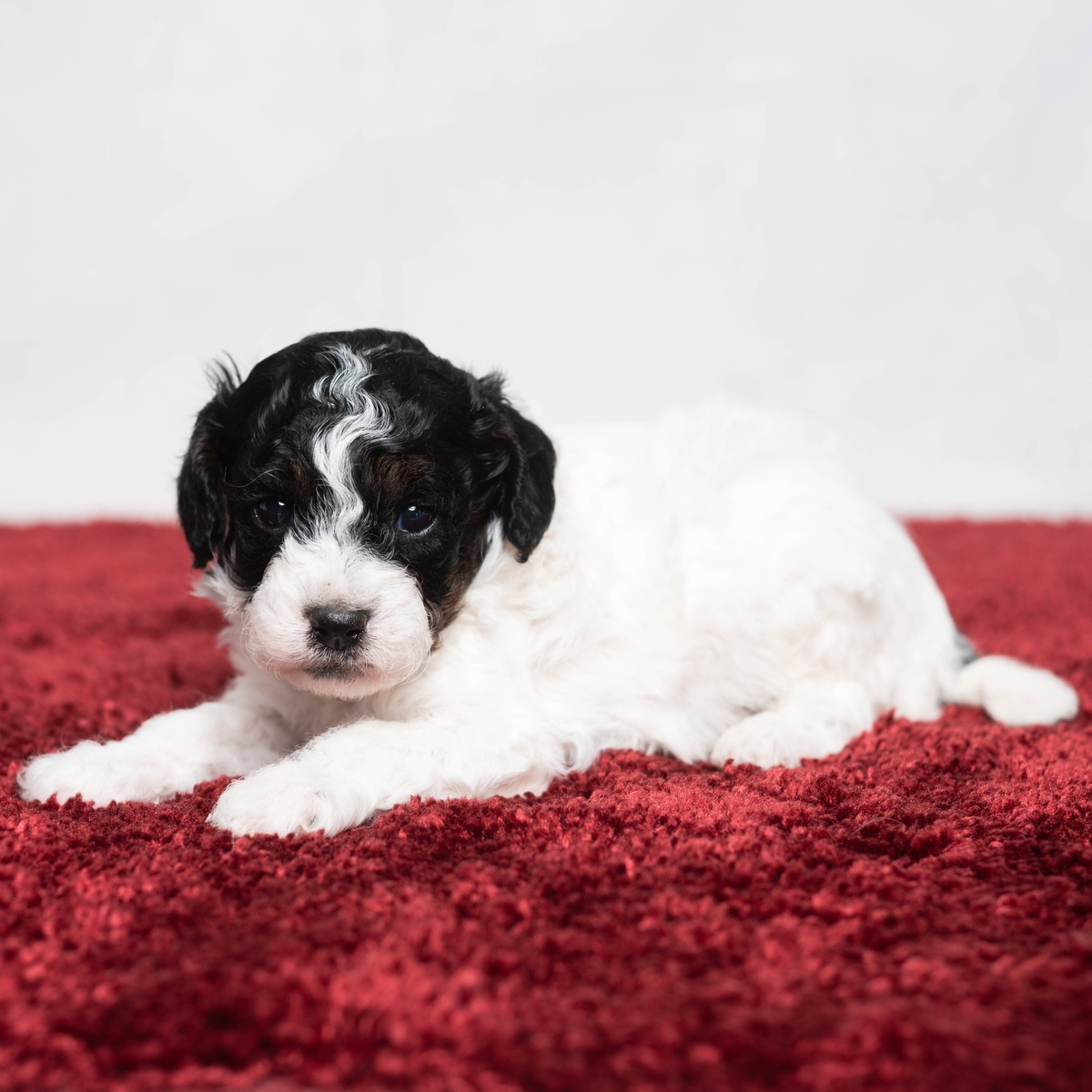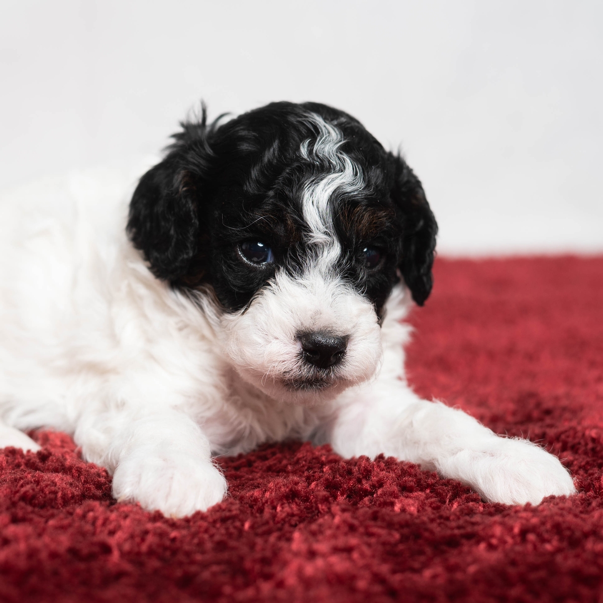 Spencer is a friendly curly haired little Cavapoo boy. White stripe down his face, some brown highlights, and inquisitive eyes will be sure to bring warmth to your heart! He will also be dewormed, up to date on vaccinations, and vet checked.