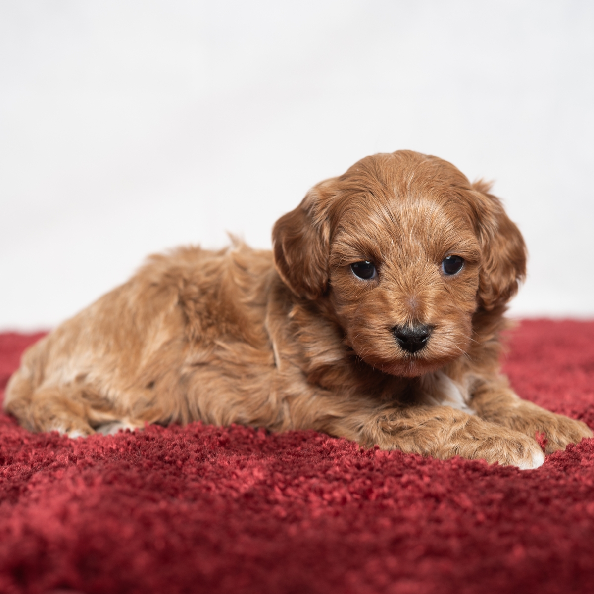 Zebra is a little Cavapoo guy wanting to spend time with you! He comes with 4 white paws and he has a spunky personality. Contact us today to learn more about this small little guy!